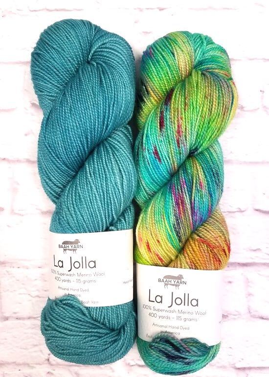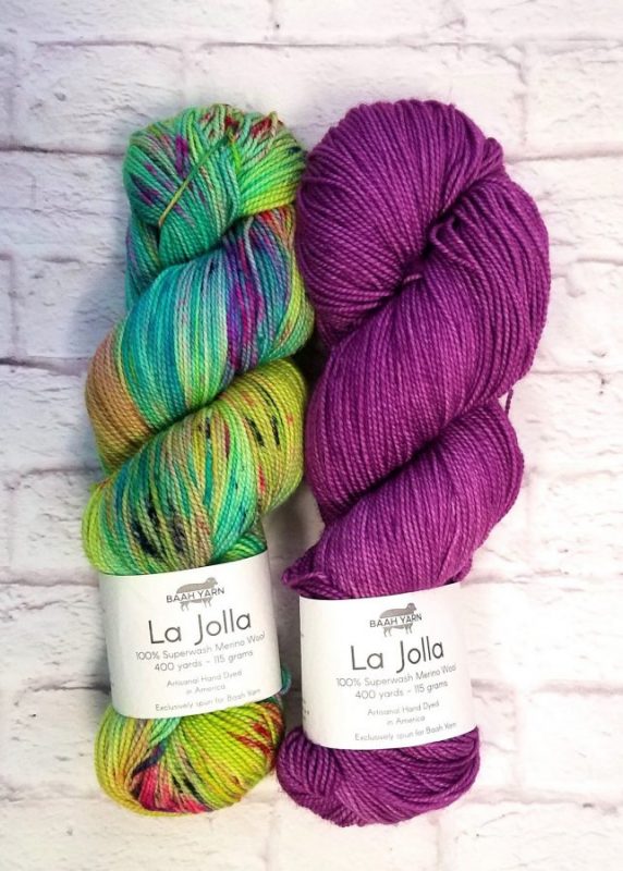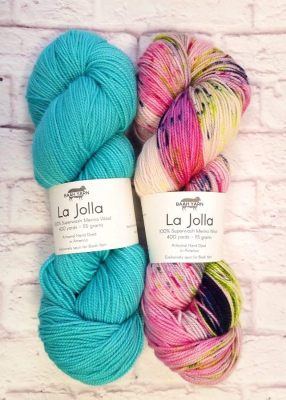 Casapinka originally designed this shawl for LYS Day ’20 in April, it has a gorgeous boomerang / asymmetric triangle shape. All you need is a skein of speckled and a solid color in fingering weight yarn such as La Jolla or Savannah. Support your LYS and order your Breathe and Hope kit by Casapinka using Baah Yarn. We will ship it directly to you! Find a Local Yarn Shop near you over at our “Where to Buy” section.